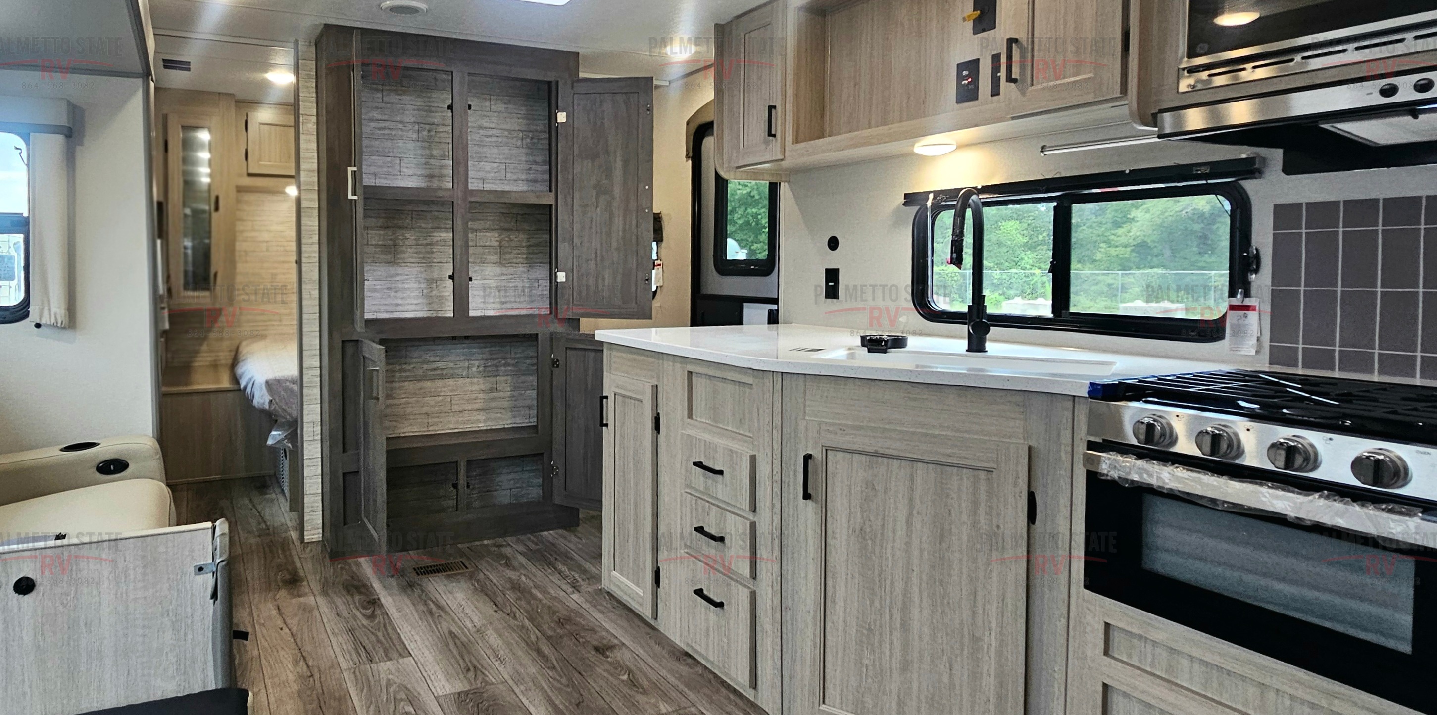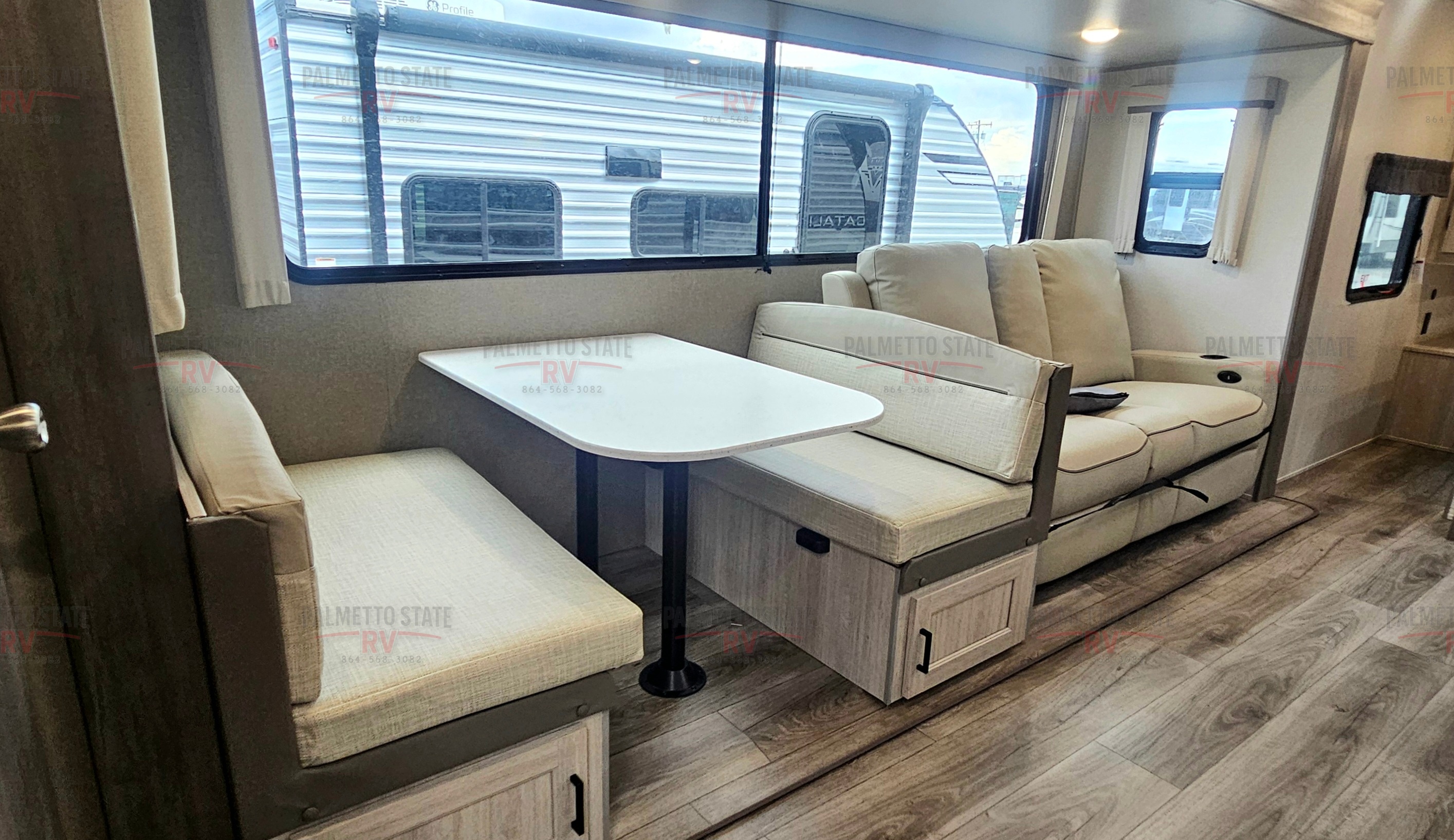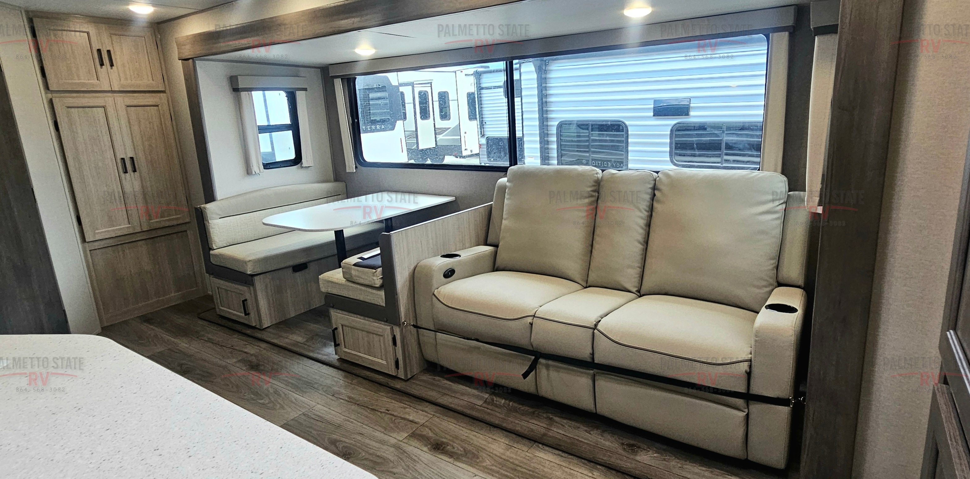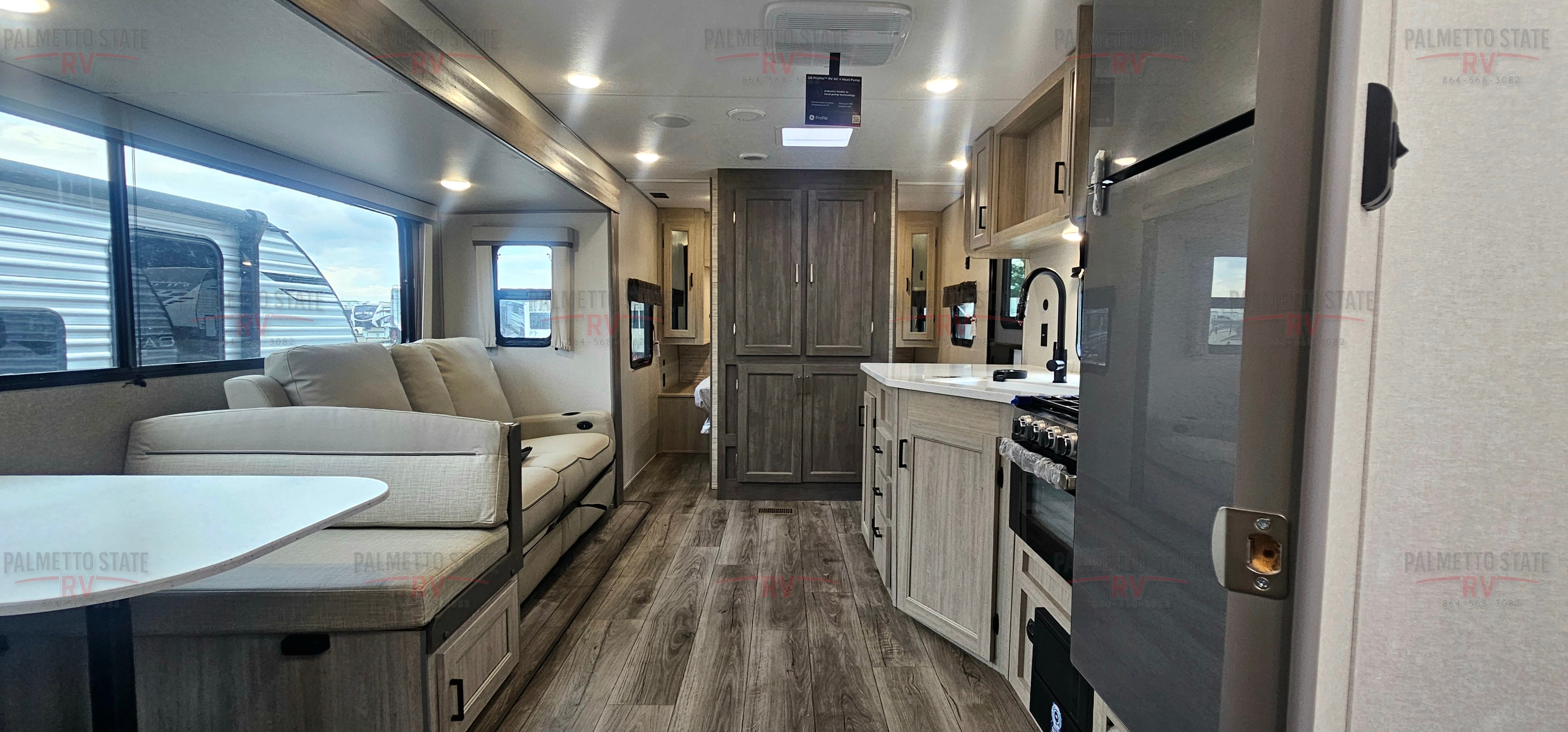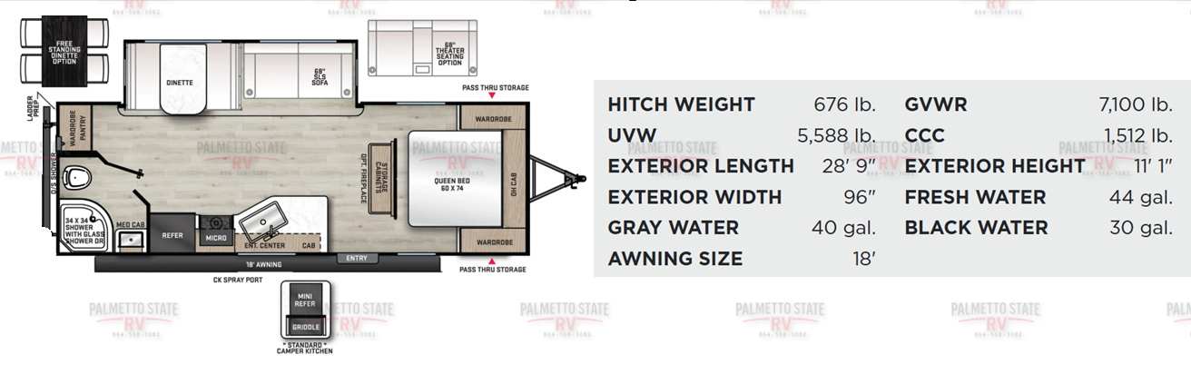 10 FT. SLIDEOUT WINDOW, POWER THEATER SEATING W/RECLINING FEAT. IPO TRUNDLE SOFA PO,RCELAIN PEDESTAL TOILET, UNIVERSAL 600W SOLAR PREP W/ INSTALLED ROOF PANEL PORT, ALL-IN-ONE CONTROL PANEL WITH DIMMER SWITCH, 360 SIPHON ROOF VENT, SKYLIGHT ABOVE TUB/SHOWER, BEDROOM USB AND OUTLETS, 12V ROOF VENT AND FAN IN LIVING AND BATHROOM, 5/8" TONGUE AND GROOVE STABLEDECK FLOORING