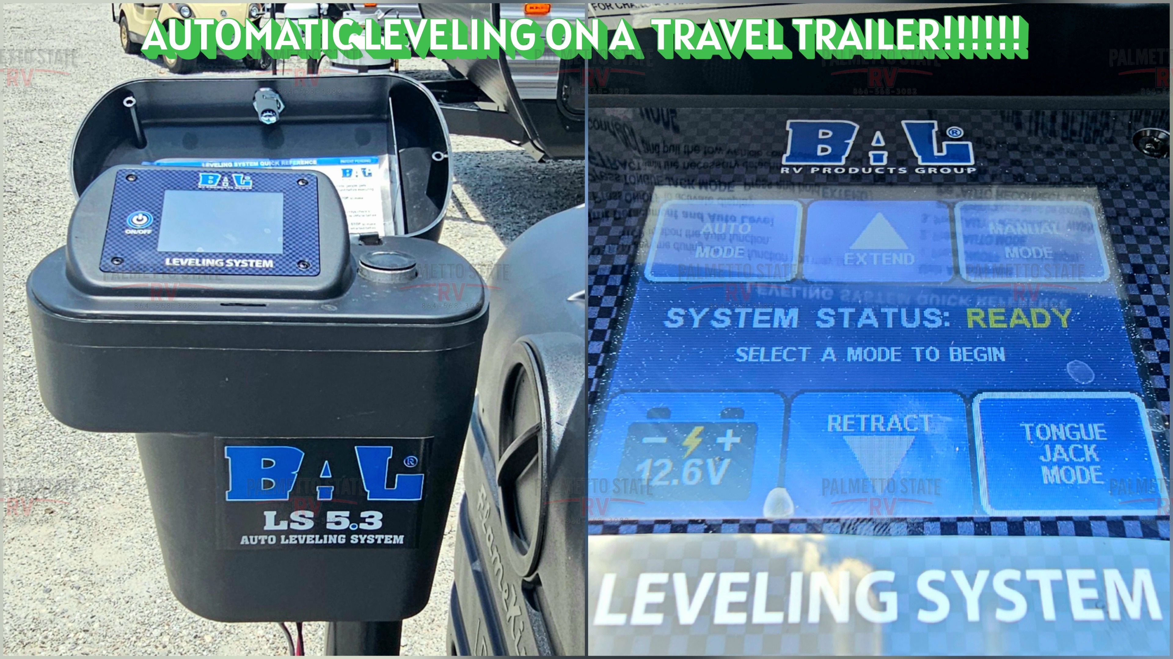 BAL 5.3 THREE POINT AUTO LEVEL WITH FRONT INDEPENDENT POWER STABILIZER JACKS AND FRONT RADIUS LIGHTING