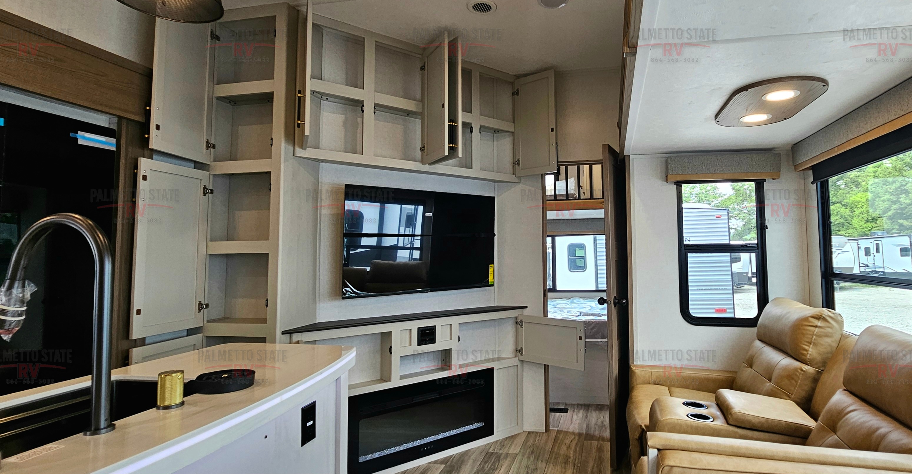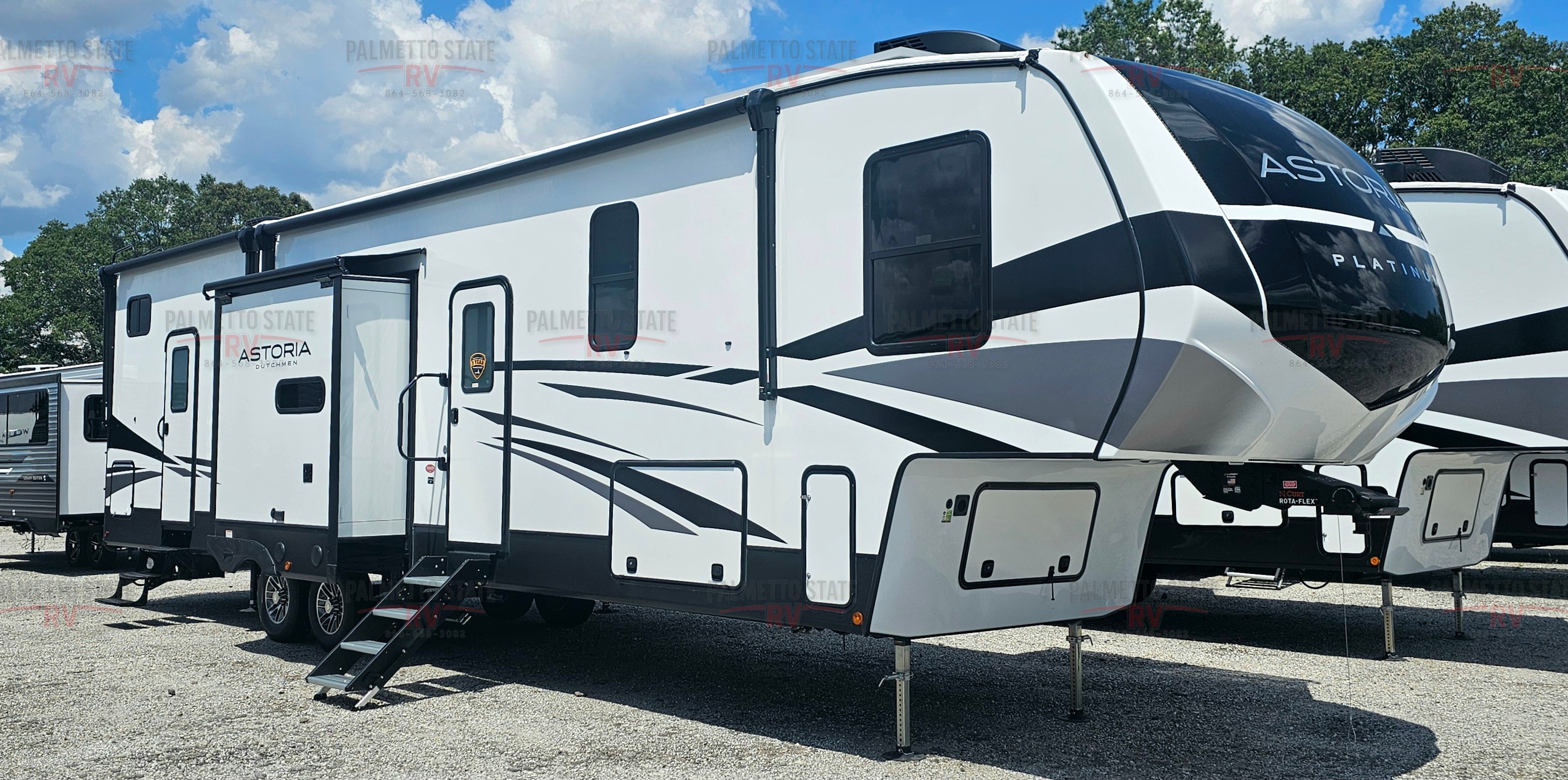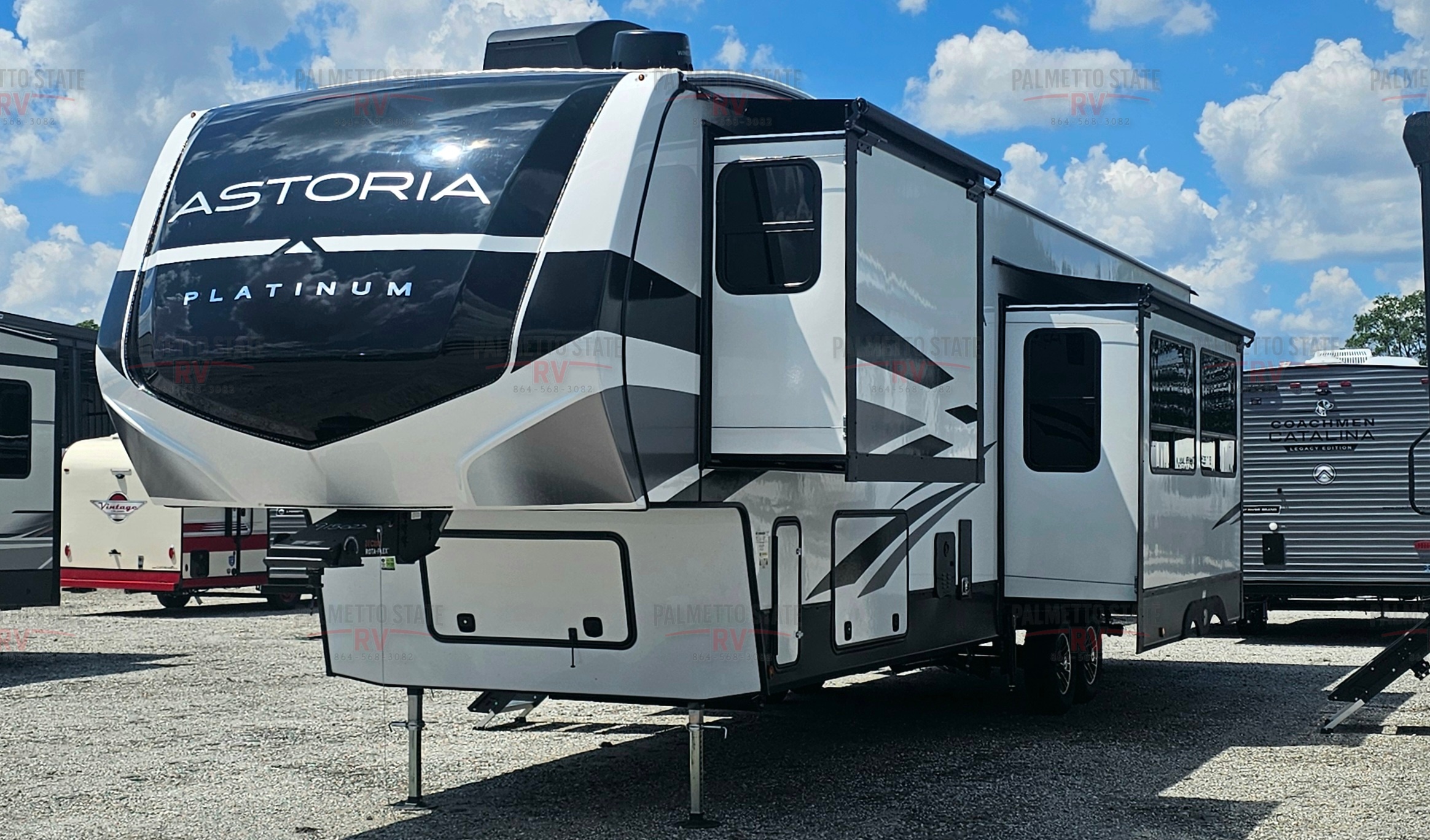 The Astoria Fifth Wheel 3603LFP offers spacious and luxurious RV living, featuring a well-designed floor plan that includes a king bed, a cozy loft, and an outdoor fridge for the ultimate camping experience. With modern amenities like a walk-in shower, theater seating, and an entertainment center, this fifth wheel is perfect for families seeking comfort on the road. Explore the freedom of RV travel with the Astoria 3603LFP, where style meets functionality for unforgettable adventures.