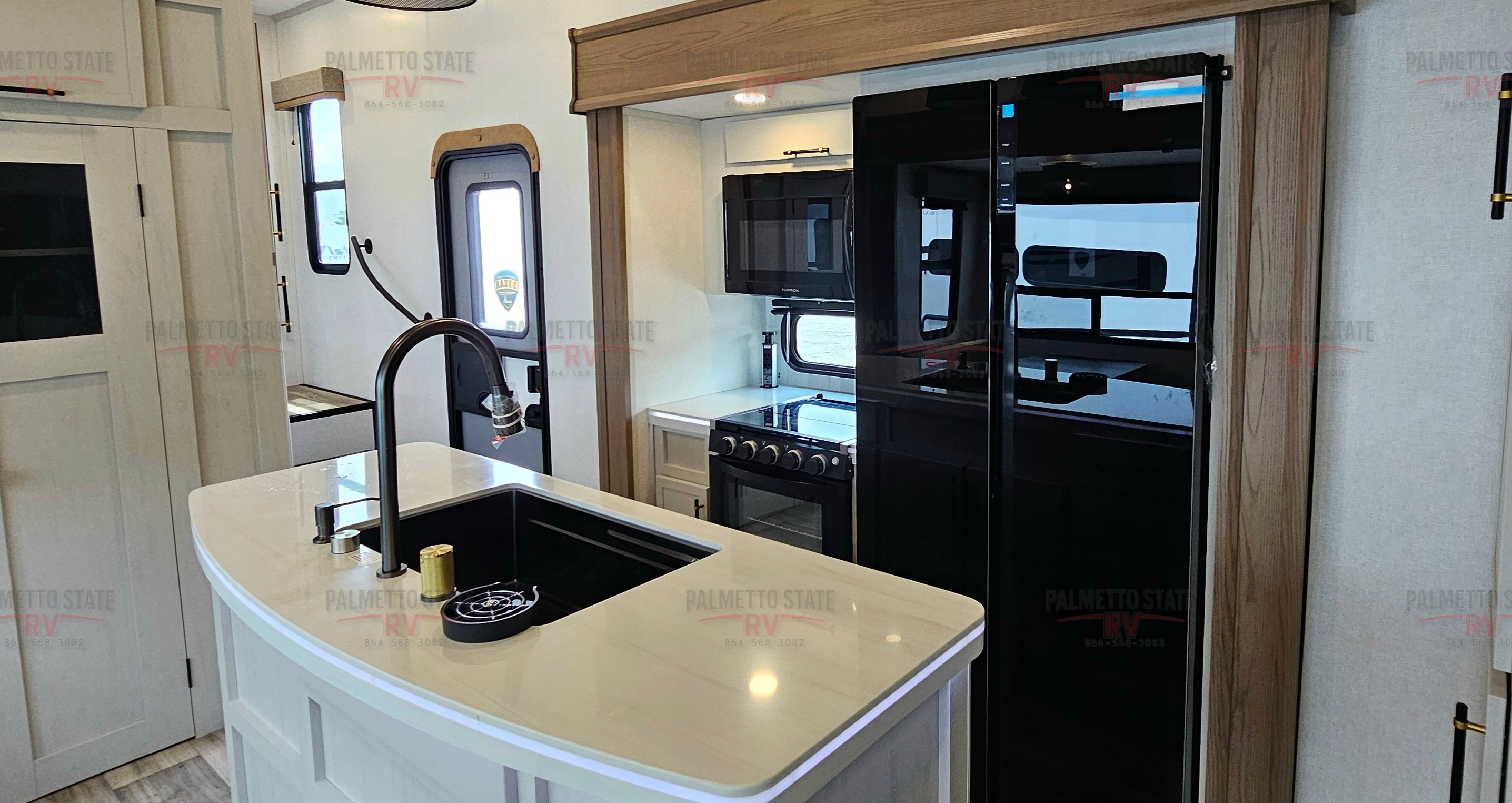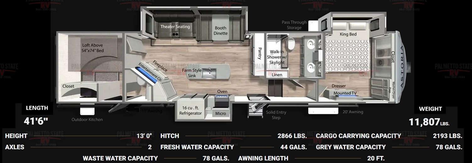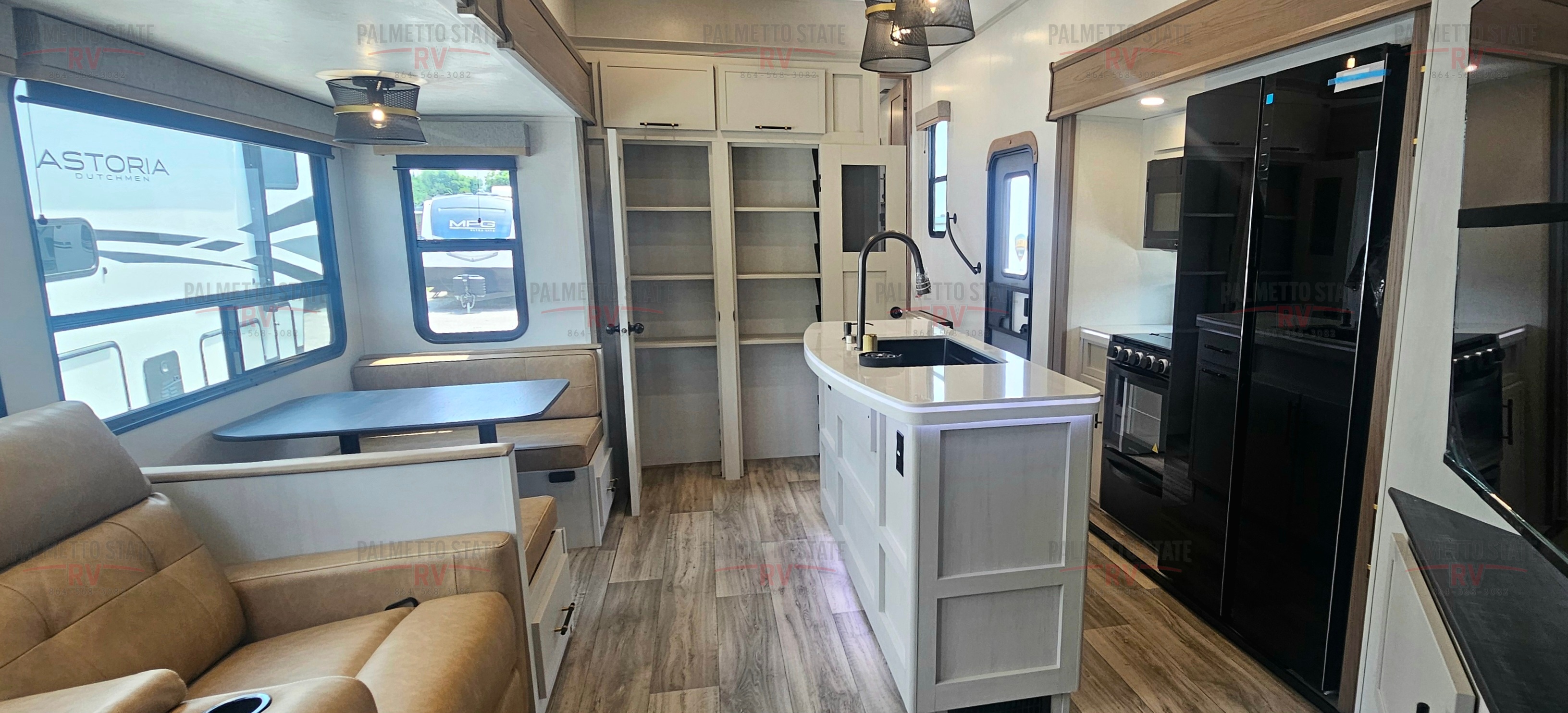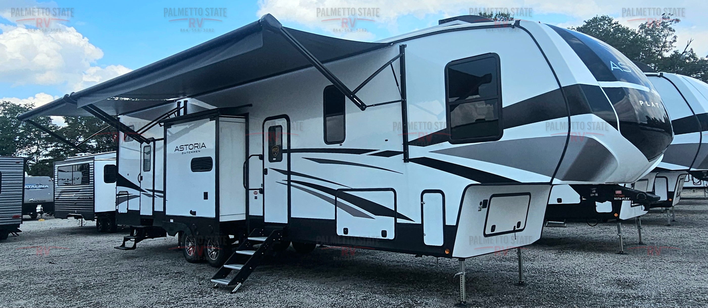 The Astoria Fifth Wheel 3603LFP offers spacious and luxurious RV living, featuring a well-designed floor plan that includes a king bed, a cozy loft, and an outdoor fridge for the ultimate camping experience. With modern amenities like a walk-in shower, theater seating, and an entertainment center, this fifth wheel is perfect for families seeking comfort on the road. Explore the freedom of RV travel with the Astoria 3603LFP, where style meets functionality for unforgettable adventures.