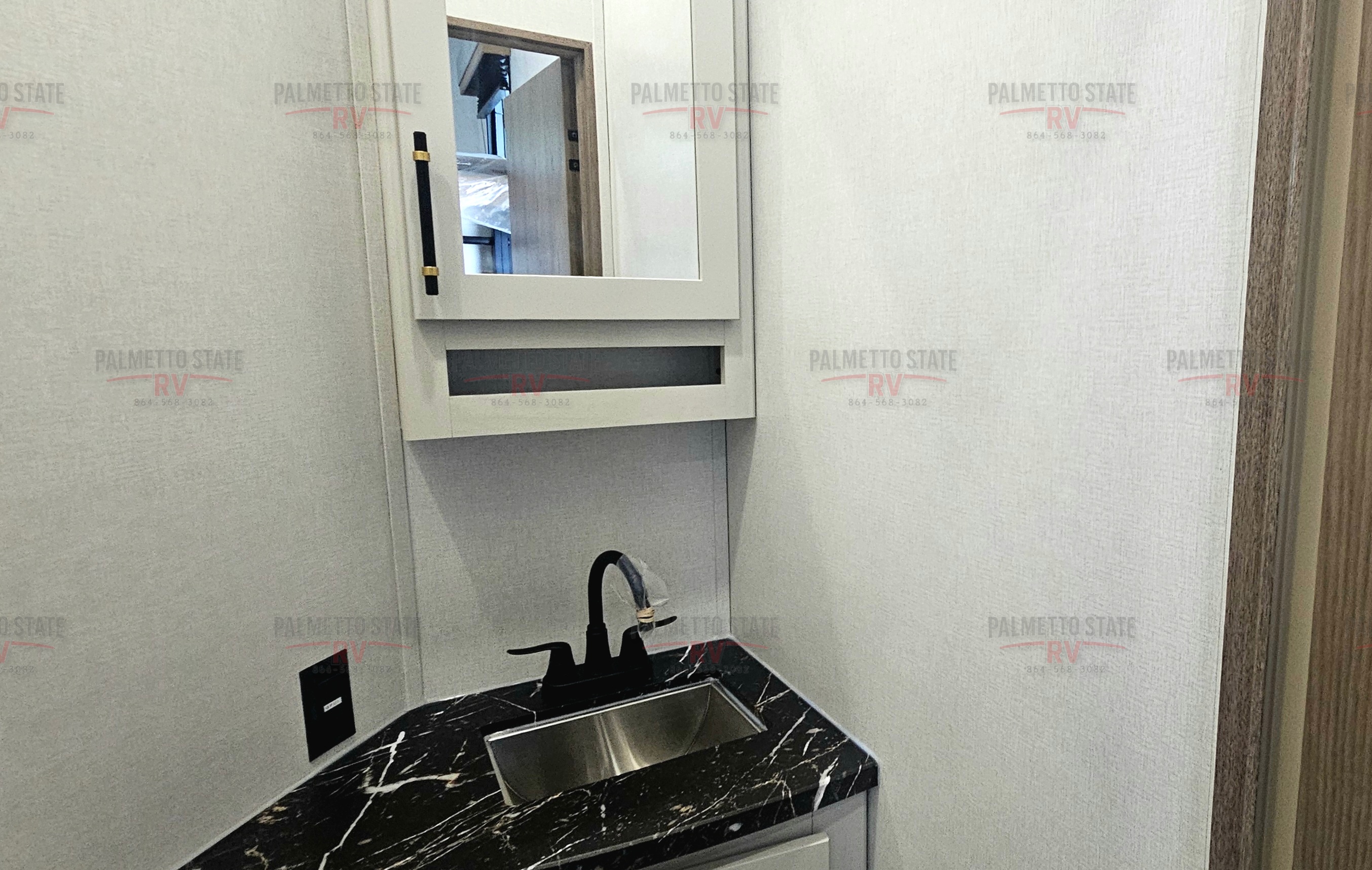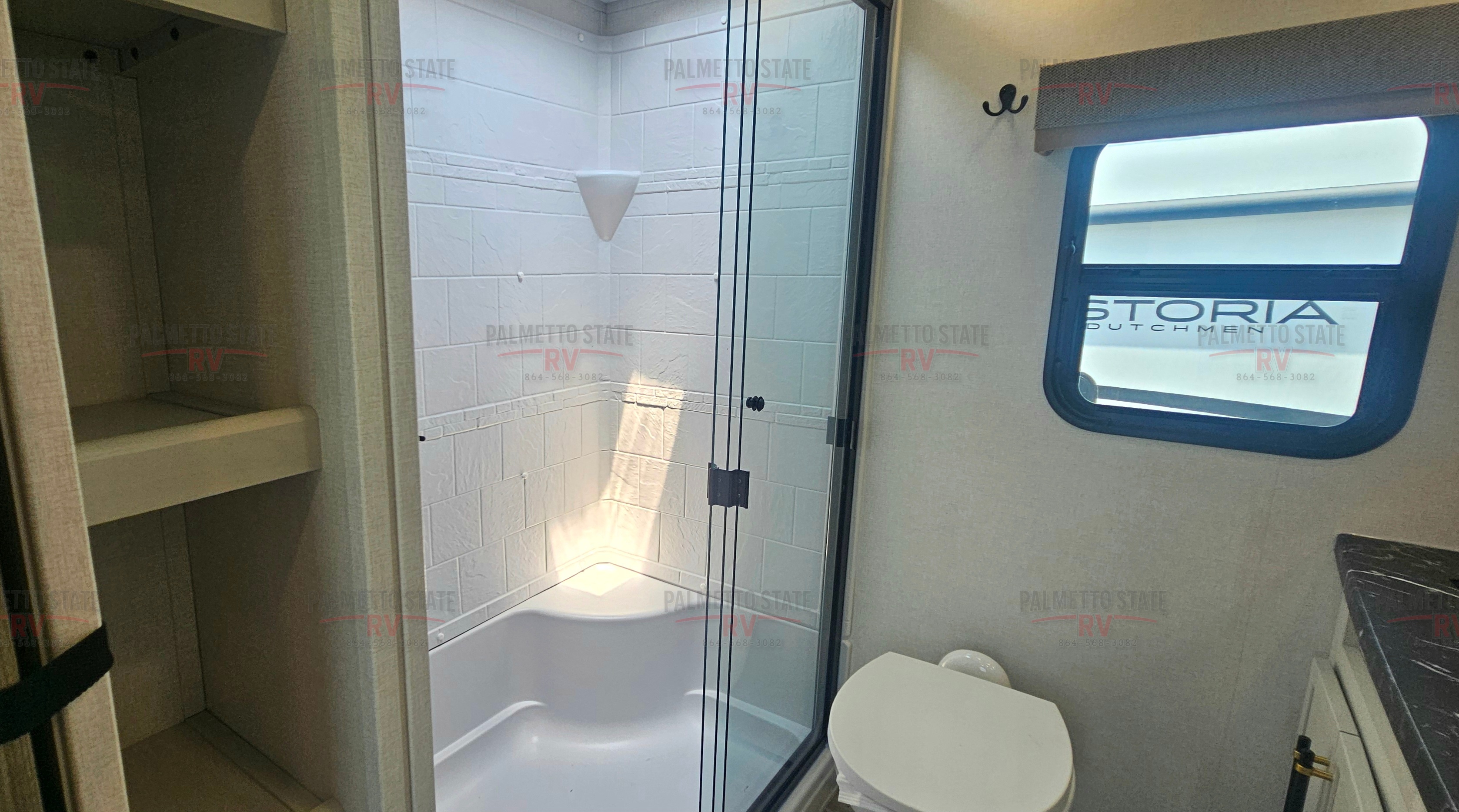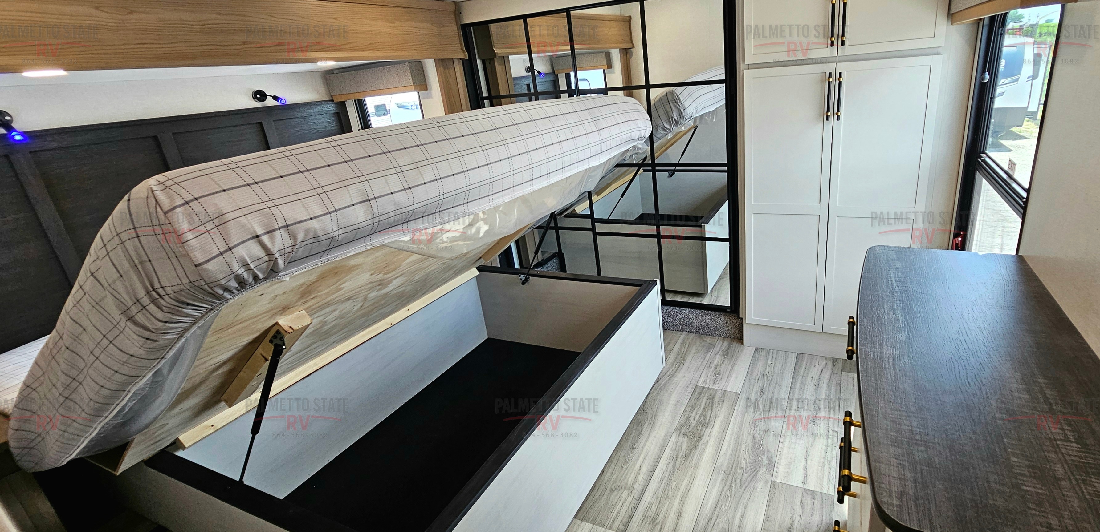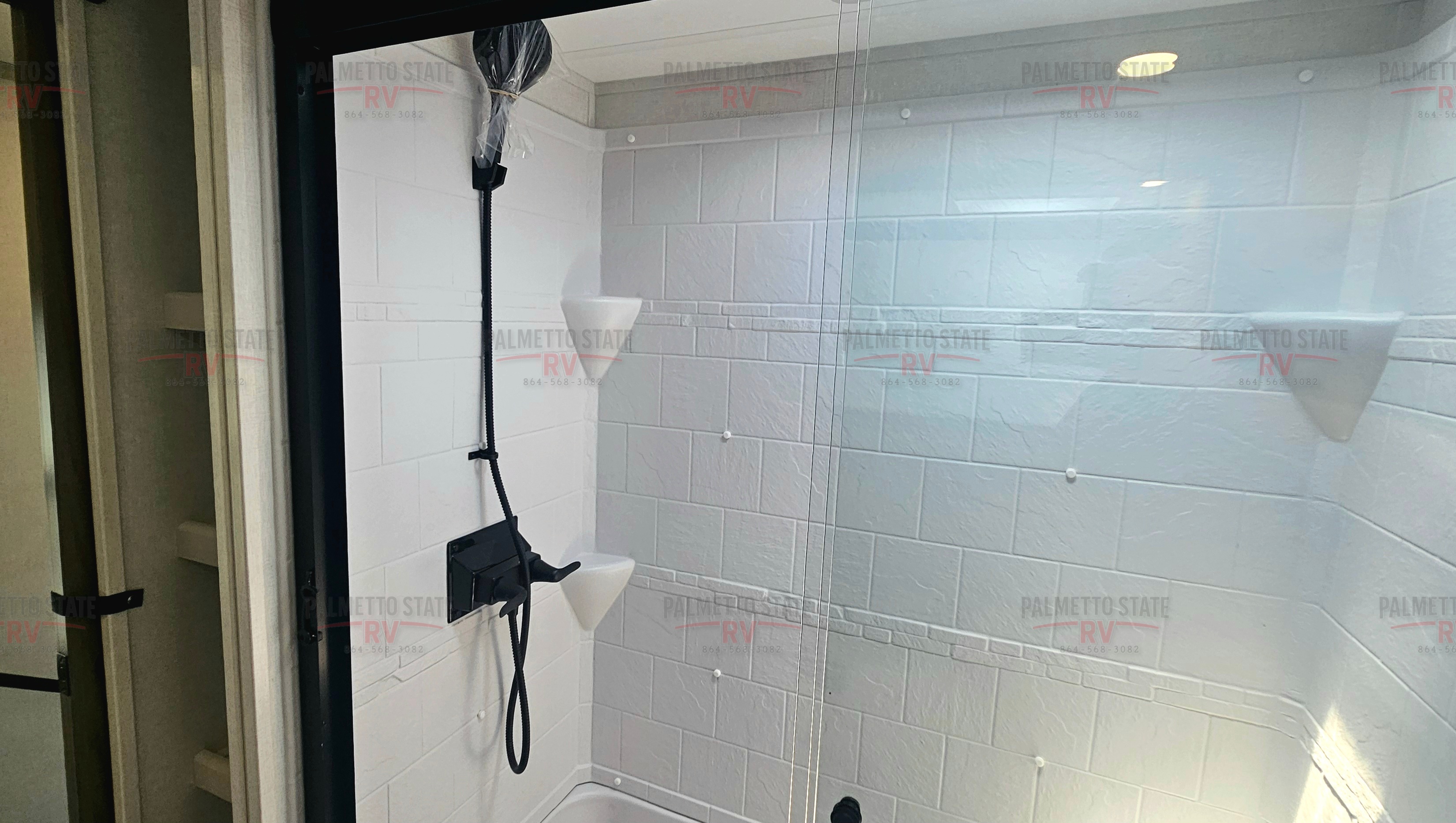 This 40ft. bunkhouse style fifth wheel offers the ability to sleep 6-8 comfortably, while still having the living space to enjoy one another. It has plenty of inside, as well as, outside storage for all of you camping needs. This floorplan has the bath and half option as well as 2 door entries into the unit.
