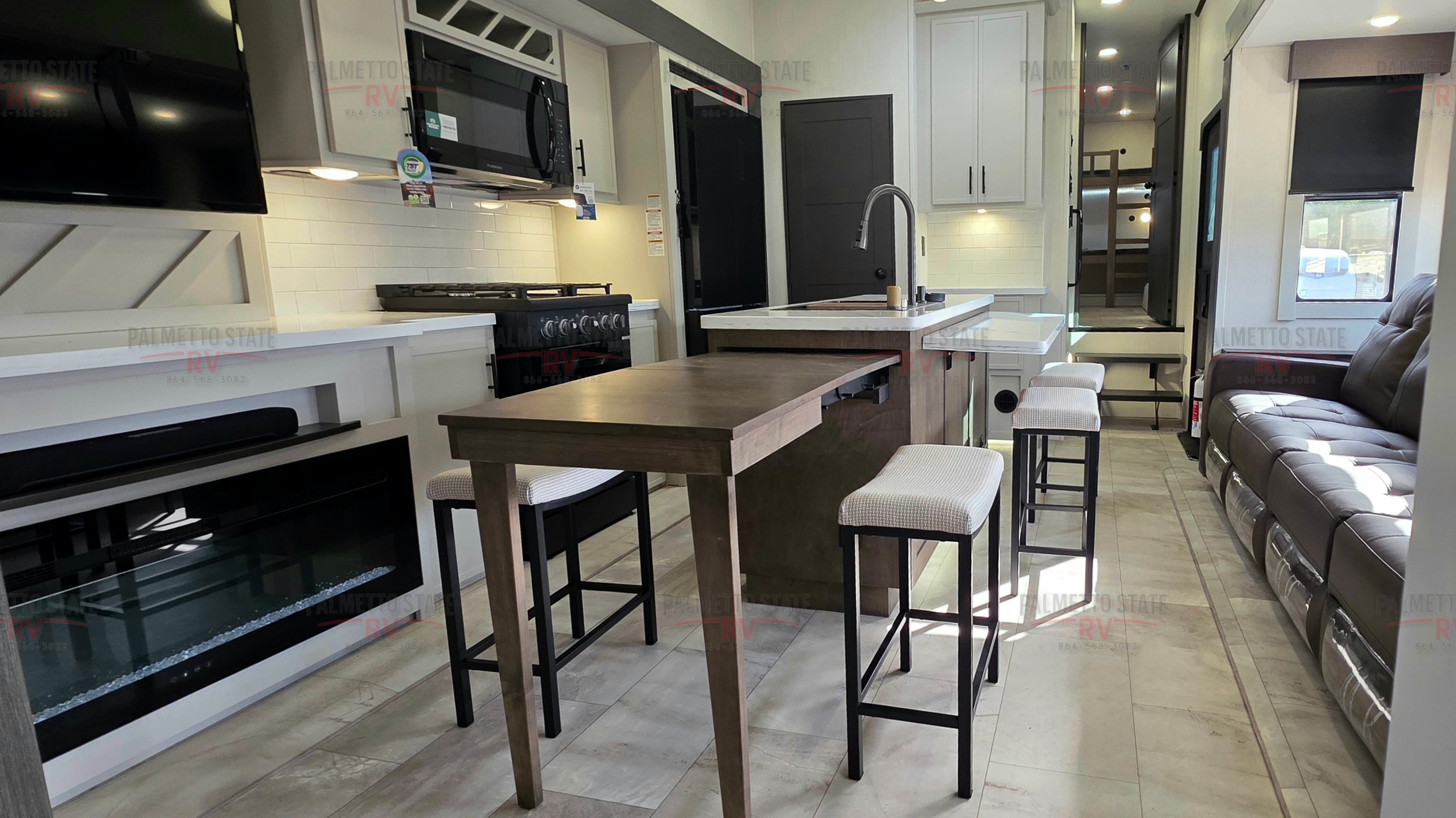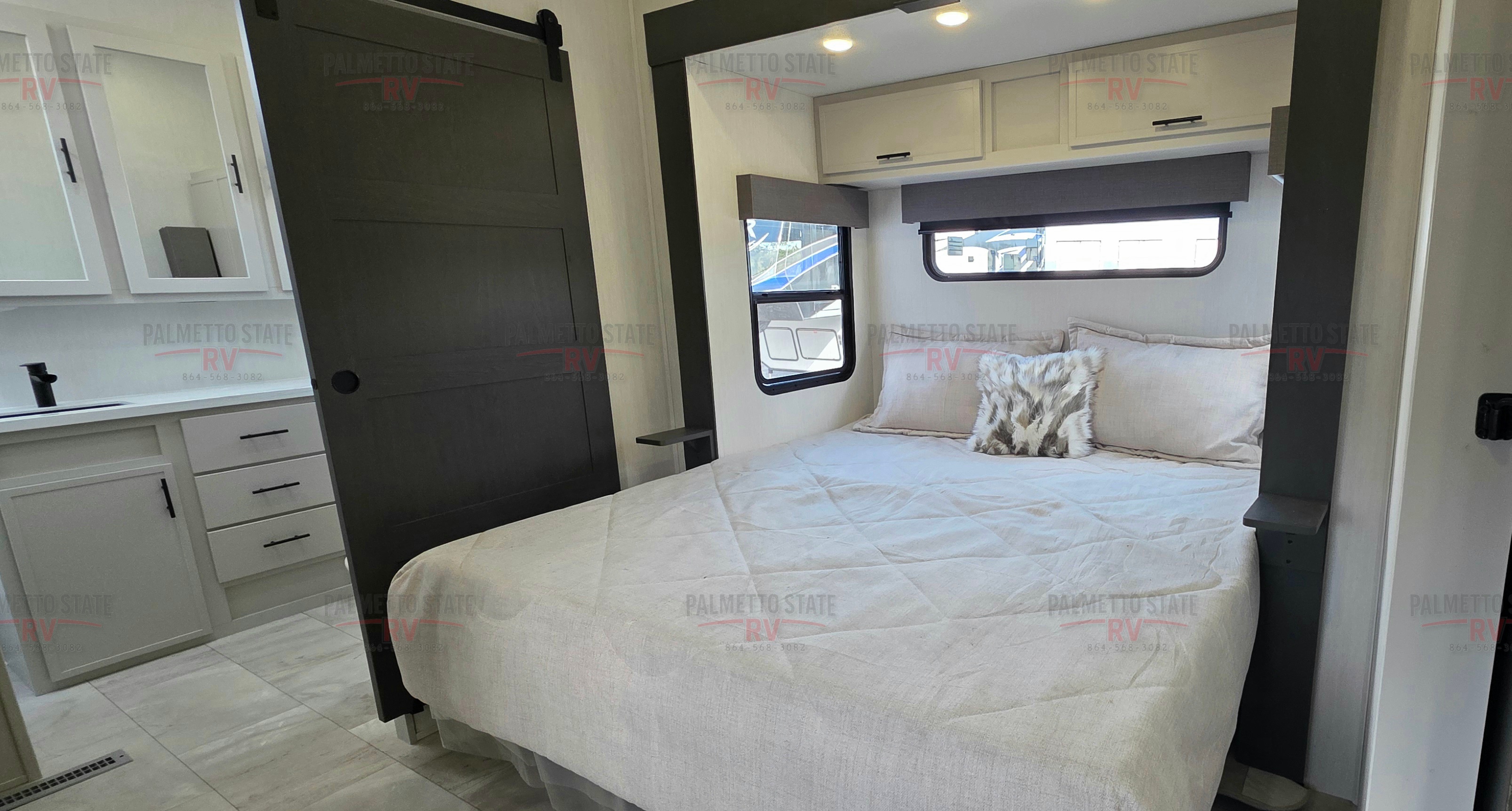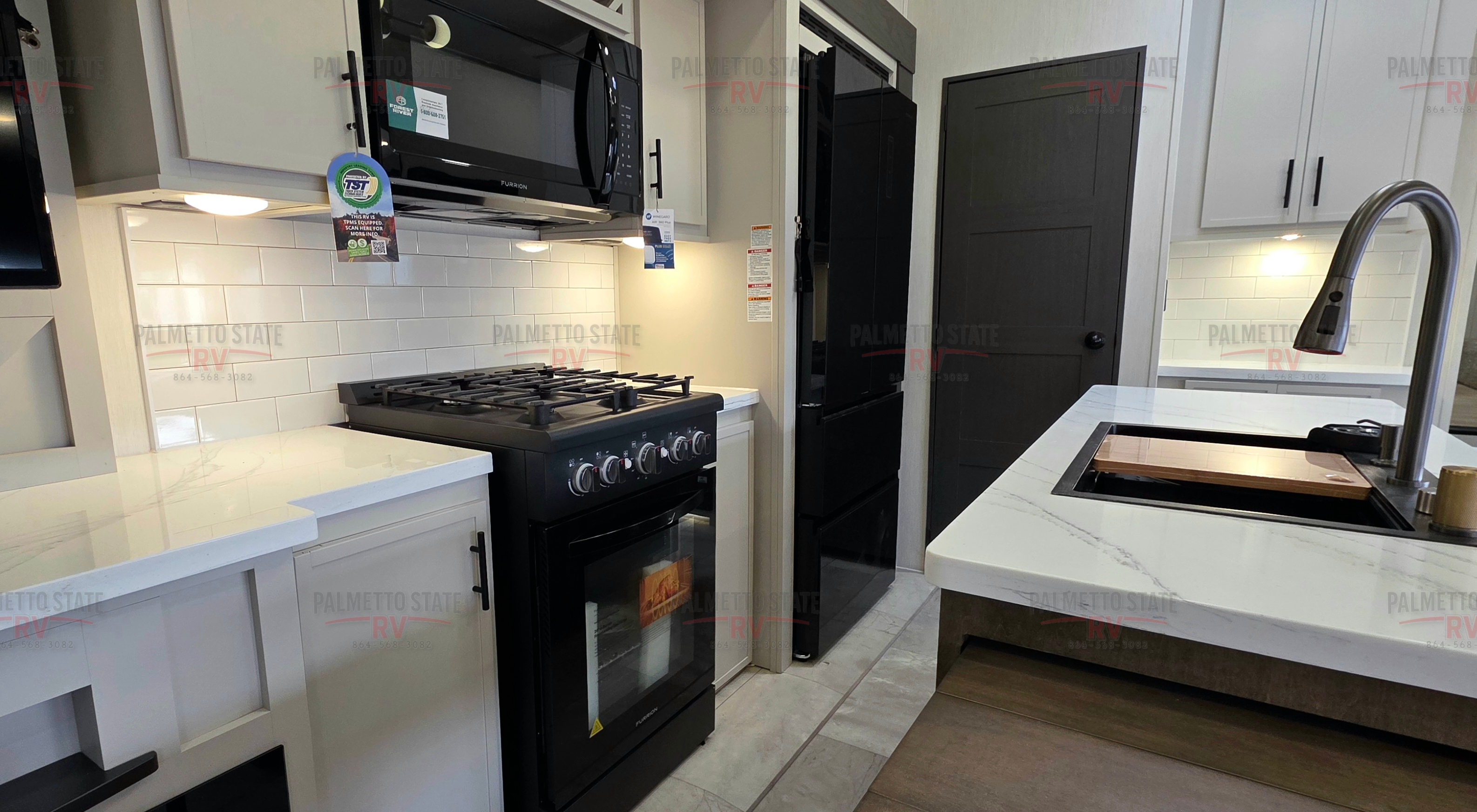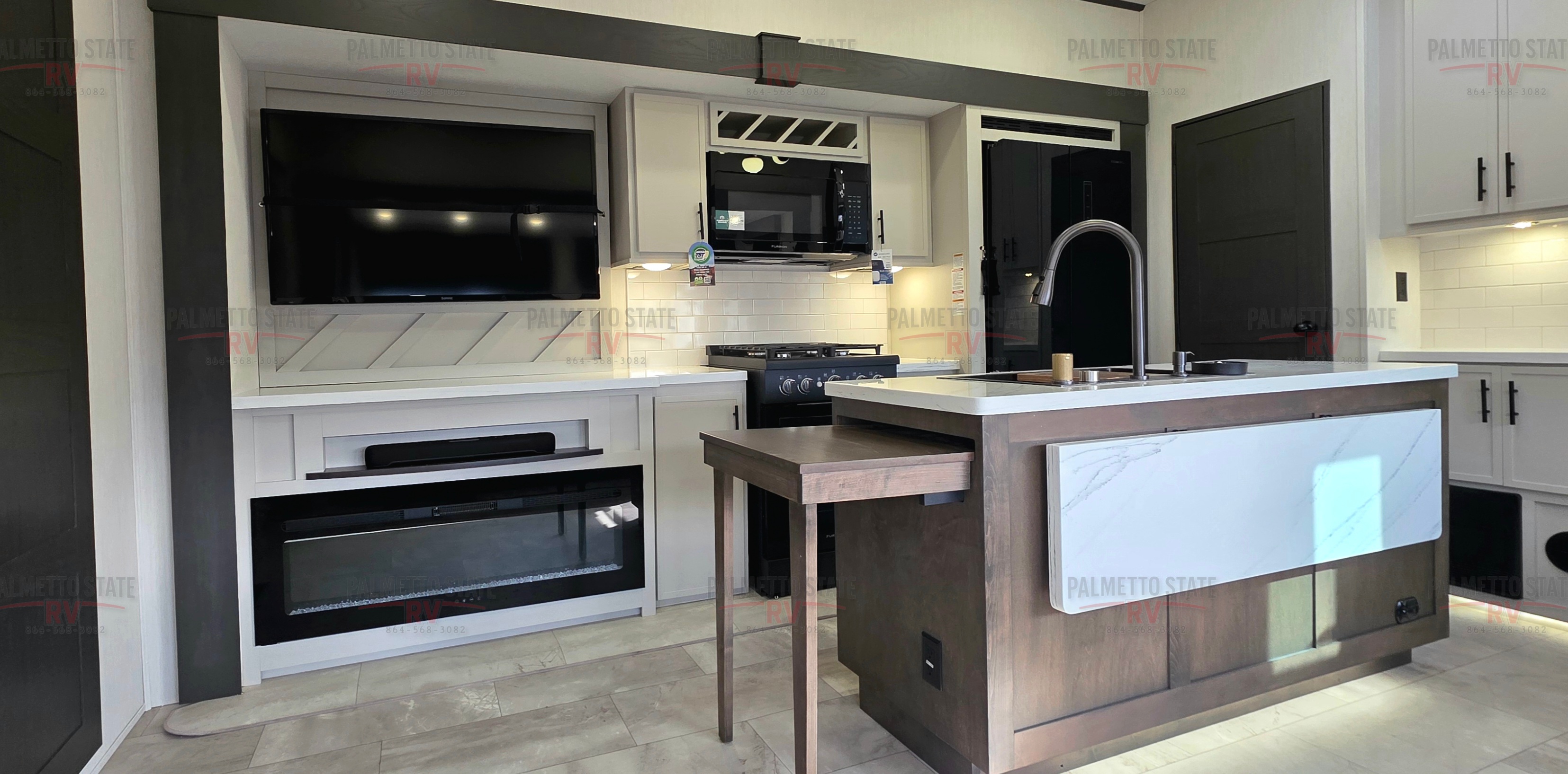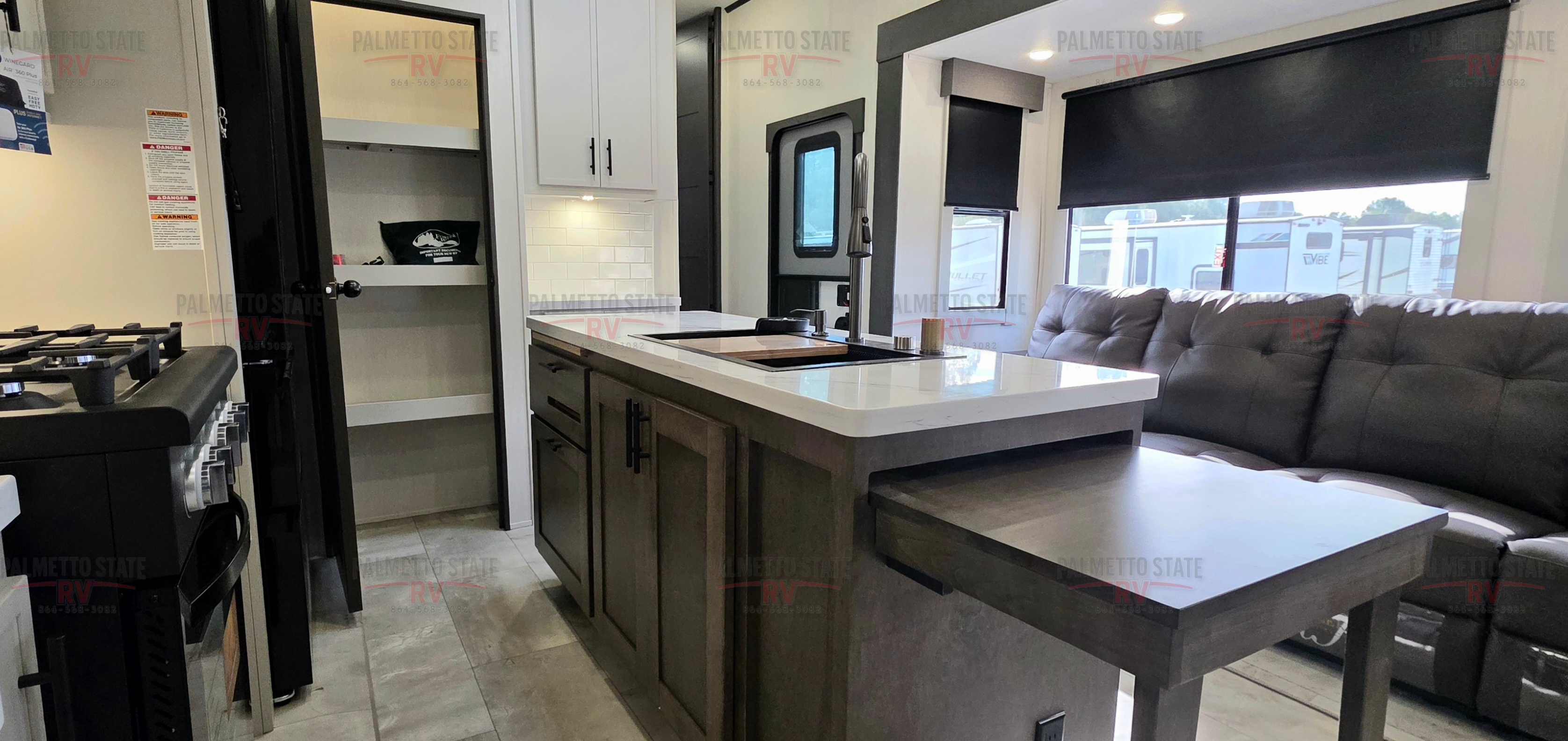 • Heat Rated Solid Surface Countertops Throughout the Coach