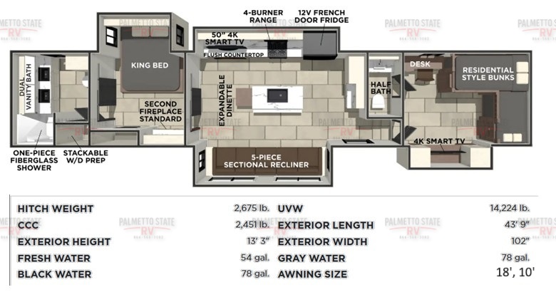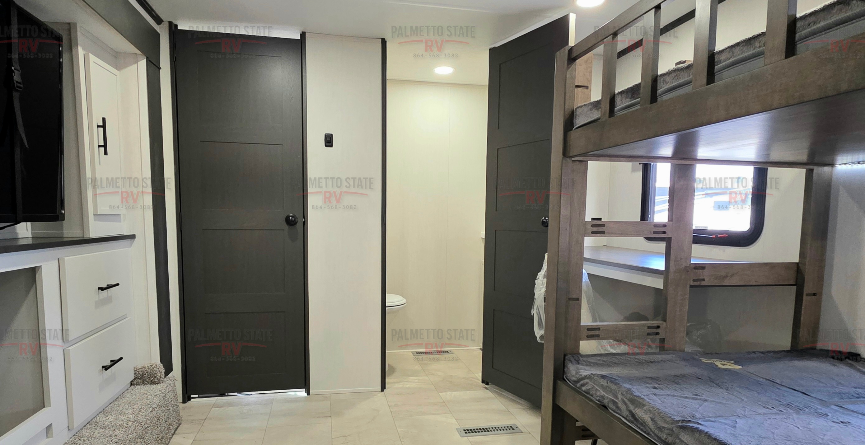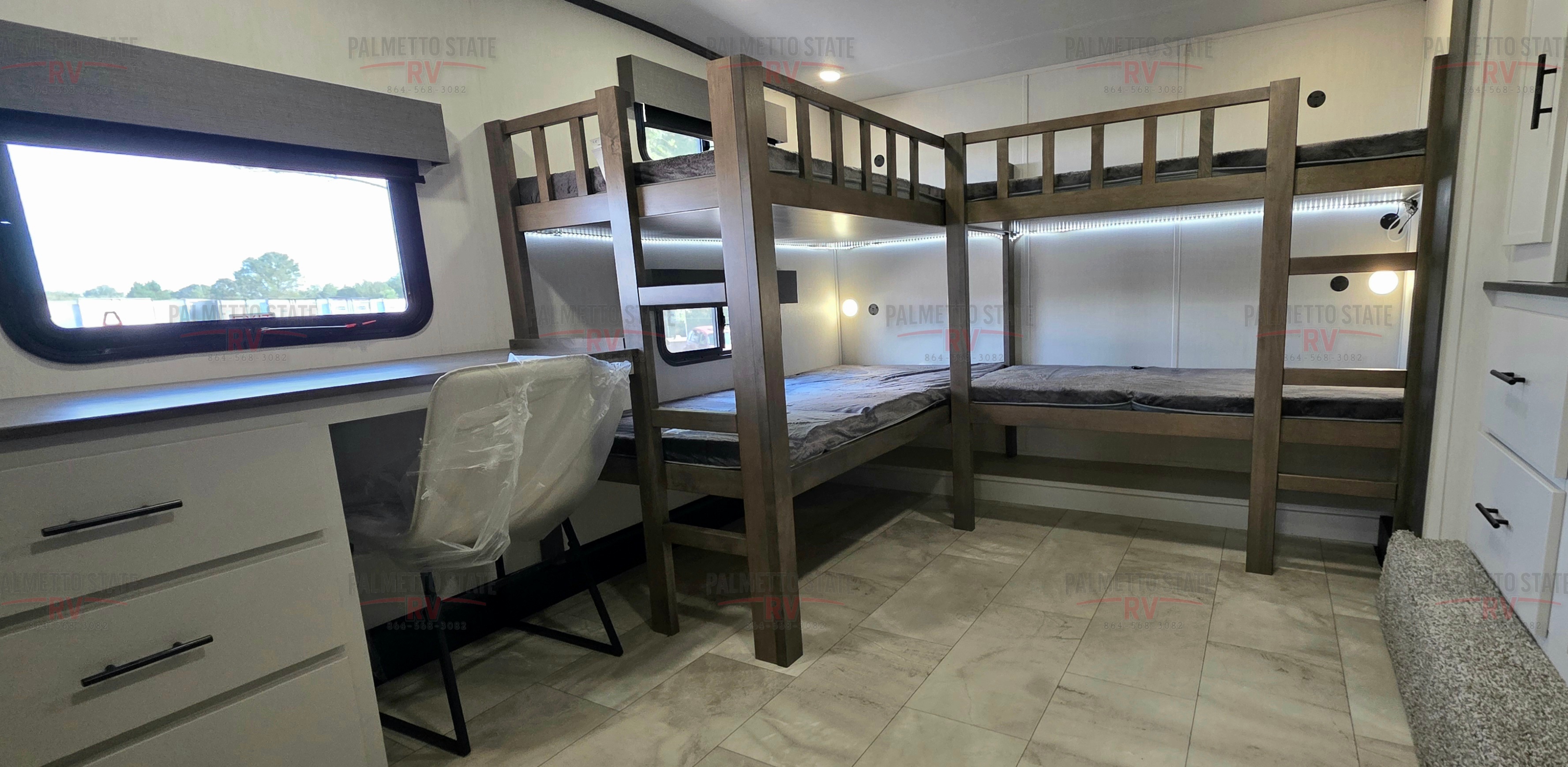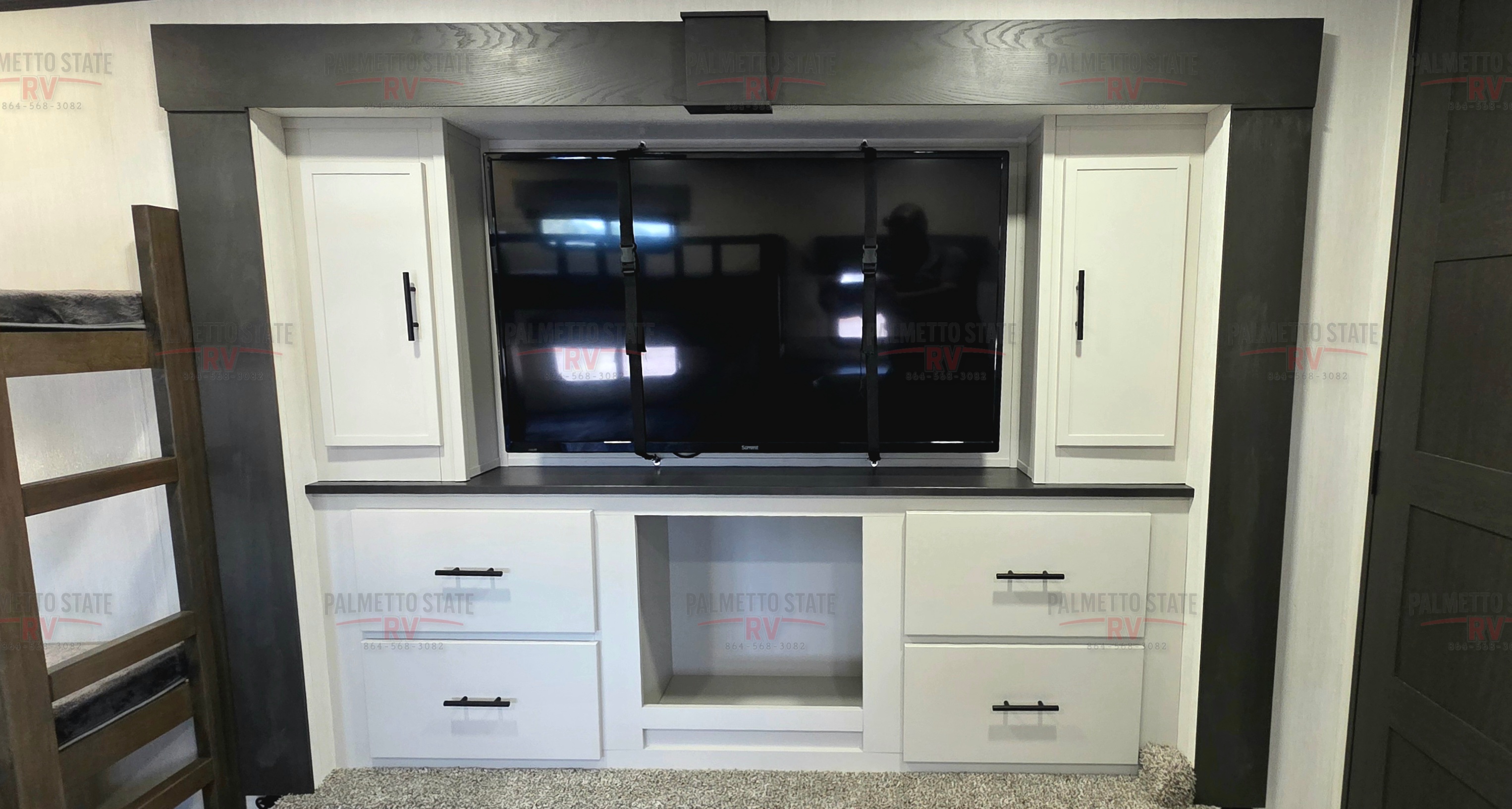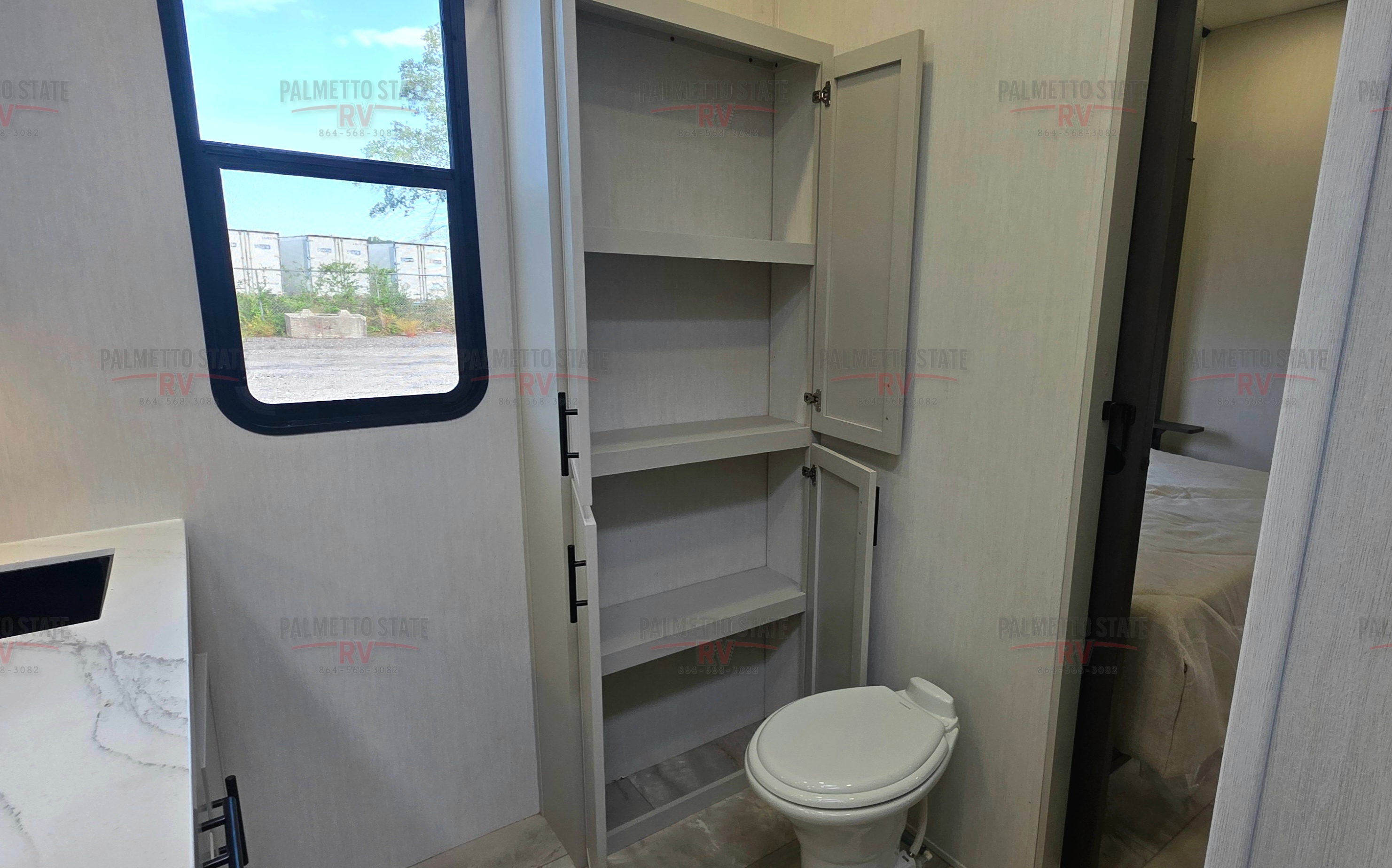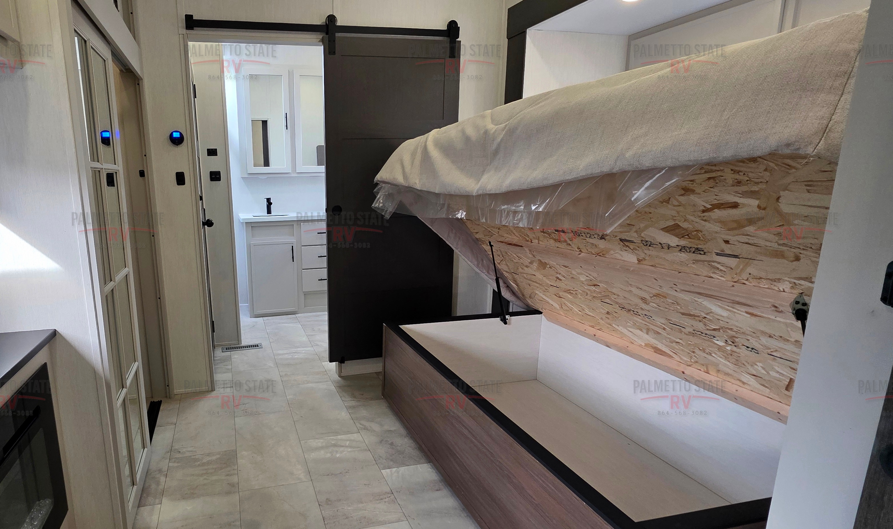 • Heat Rated Solid Surface Countertops Throughout the Coach