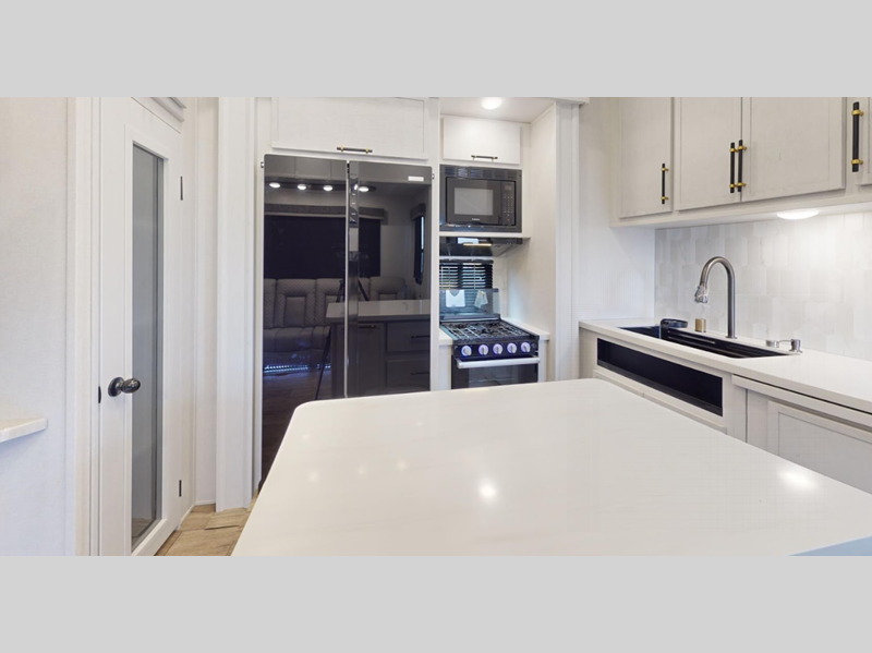 Sleeps 7 Slides 2 Length 40 ft 10 in Ext Height 13 ft 2 in Interior Color Midnight, Platinum Hitch Weight 2915 lbs Dry Weight 13023 lbs Cargo Capacity 3777 lbs Fresh Water Capacity 94 gals Grey Water Capacity 88 gals Black Water Capacity 88 gals Generator 5500W Onan Fuel Capacity 30 gals Number Of Bunks 1 Available Beds Queen Refrigerator Type 12V Refrigerator Size 16 cu ft Cooktop Burners 3 Shower Size 50" Number of Awnings 1 Axle Weight 7000 lbs Garage Size 14 ft Water Heater Type Tankless TV Info 50" TV Awning Info 21' Axle Count 2 Shower Type Walk-In Shower Similar Floorplans
