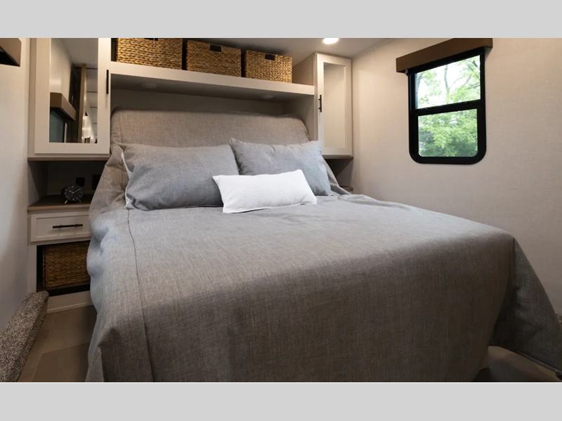 - 110 Outlet & 12V Charging Ports Beside Bed