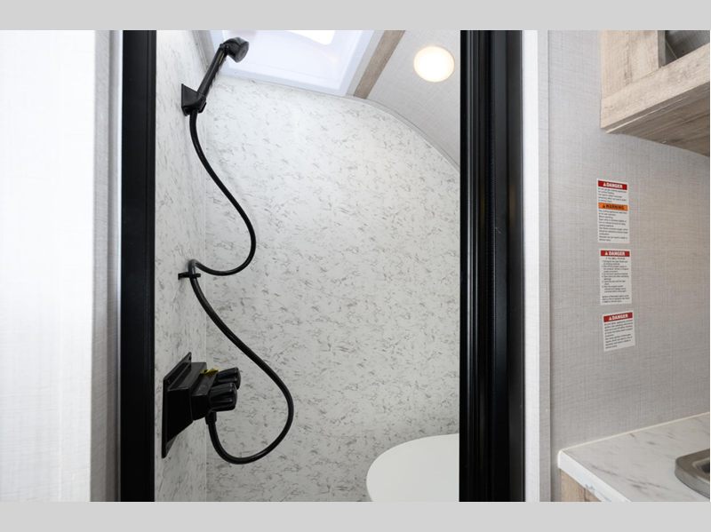 Sleeps 2 Length 18 ft 2 in Ext Width 6 ft 9 in Ext Height 9 ft 2 in Int Height 6 ft Hitch Weight 360 lbs Dry Weight 2410 lbs Cargo Capacity 1450 lbs Fresh Water Capacity 18 gals Grey Water Capacity 27 gals Black Water Capacity 27 gals Furnace BTU 20000 btu Available Beds Queen RV Refrigerator Type Gas/Electric Cooktop Burners 2 LP Tank Capacity 20 lbs Water Heater Capacity 6 gal Water Heater Type DSI Gas AC BTU 5000 btu Axle Count 1 Number of LP Tanks 1 Shower Type Wet/Bath Shower Solar Wattage 100 watts